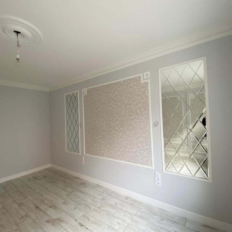 Сейчас здесь еще пусто, и мы можем представить различные варианты меблировки. Но уже понятно, что возле зеркал обязательно будут настенные светильники: будет ли это гостиная с широким и низким диваном или спальня, где в изголовье кровати подвесят бра для чтения. Возможно, здесь расположатся мягкие кресла и маленький столик, над которым, создавая уютный свет, будут блестеть лампы, отражаясь в зеркальных гранях, - зеркала в любом случае будут смотреться органично.